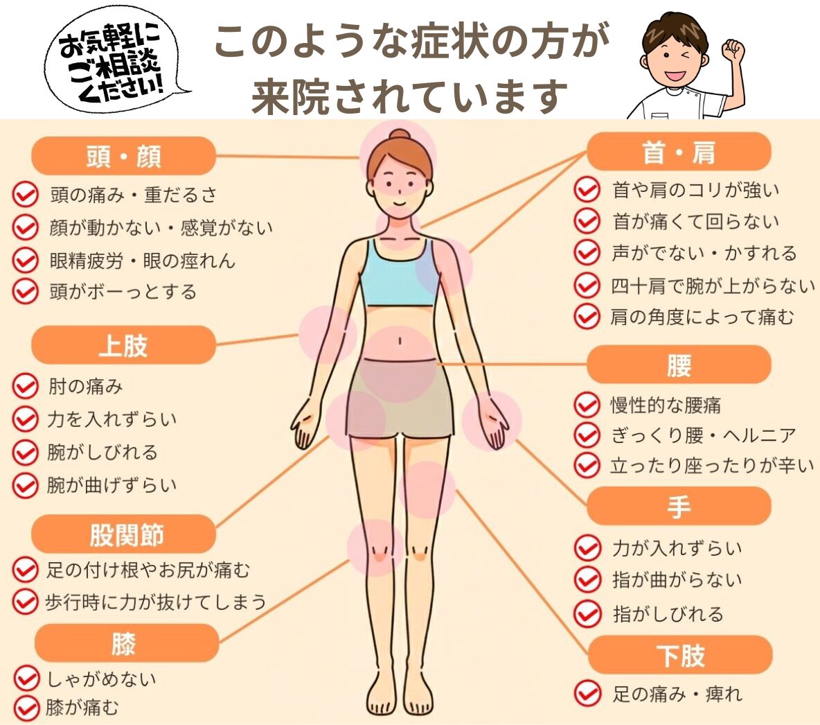 西洋医学的に「麻痺とはどういった状態なのか?」「まず何をすべきなのか?」といったことを踏まえながら、東洋医学的なアプローチによって少しでも早く完治に向かえるようにお手伝いをさせていただいています。
